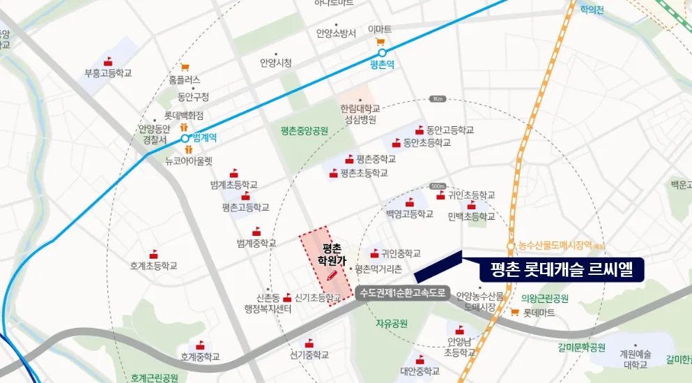인동선(인덕원~동탄)은 농수산물도매시장역으로 예정되어있으며, ‘평촌 롯데캐슬 오피스텔’과 300m 초 역세권 입니다.